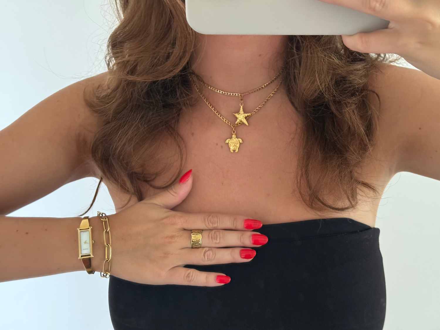 Vælg kæde og charms, mål håndleddet til armbåndet, eller vælg længde til halskæden.